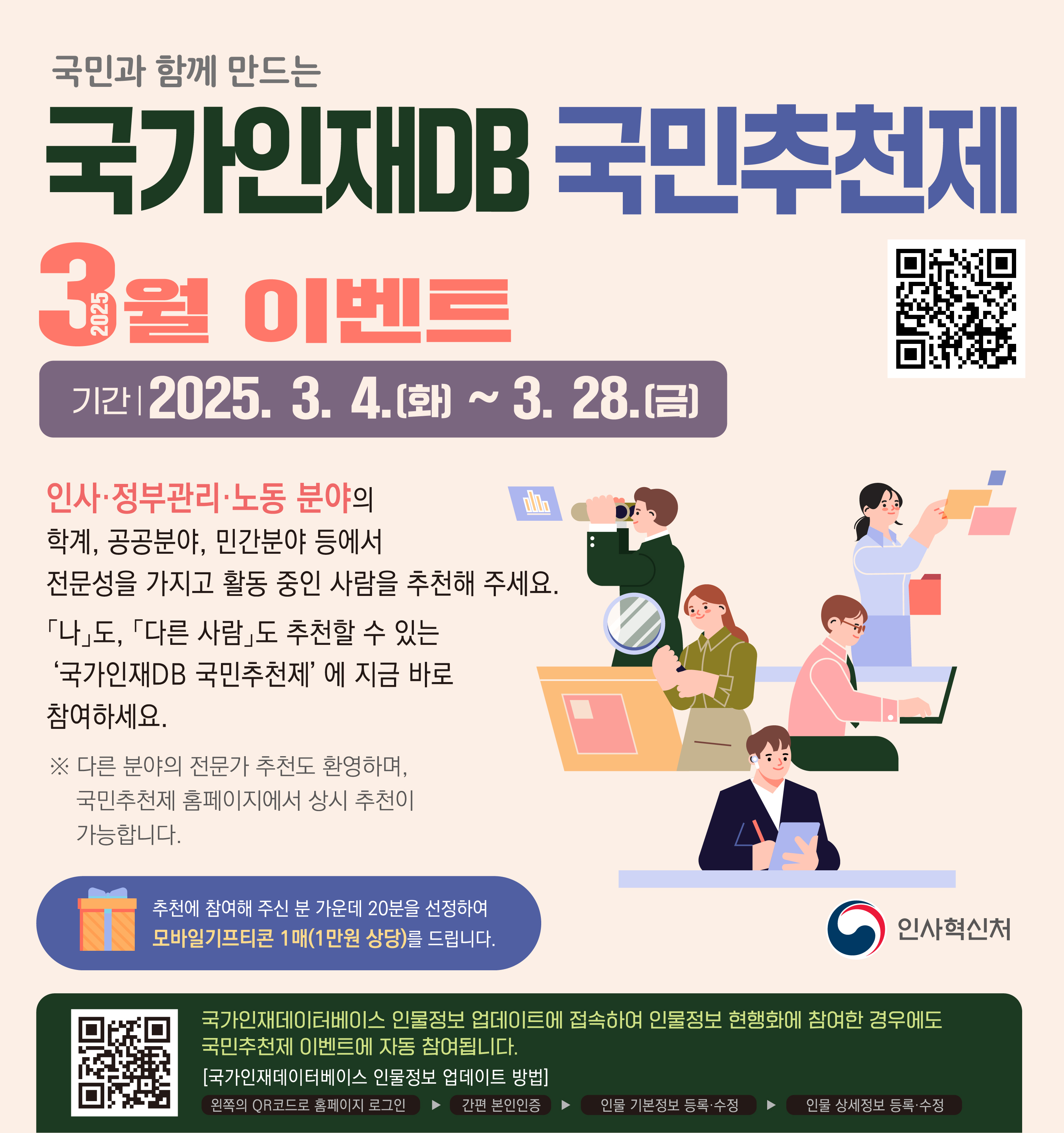 인사혁신처에서 국가인재DB 인재발굴을 위한 전문가 추천을 접수하고 있습니다.