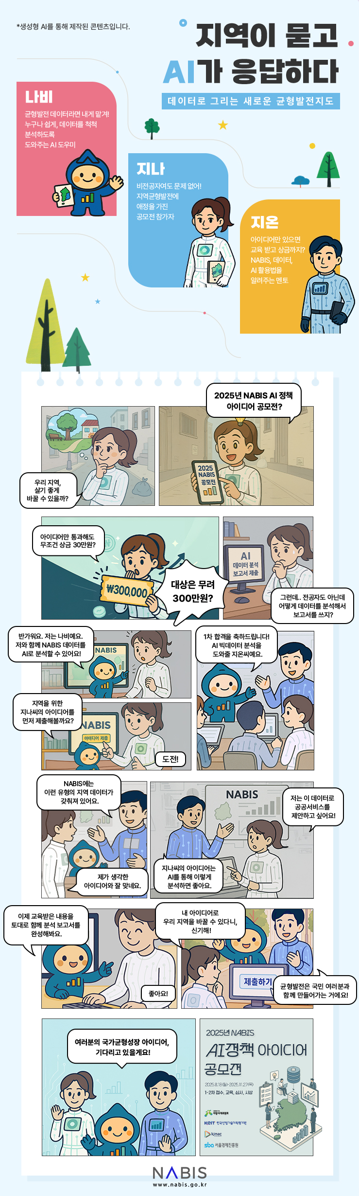 대통령직속 지방시대위원회 주최, 한국산업기술기획평가원·한국산업기술문화재단·서울경제진흥원 공동주관으로 진행중인 <2025년 NABIS AI 정책 아이디어 공모전>을 소개하고자 공지 드립니다.